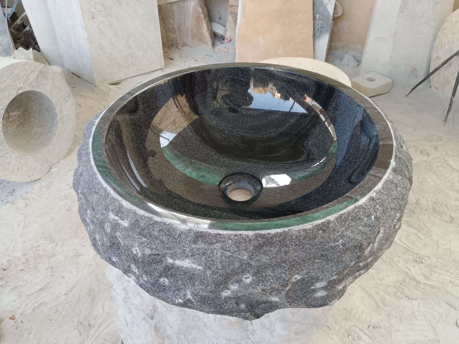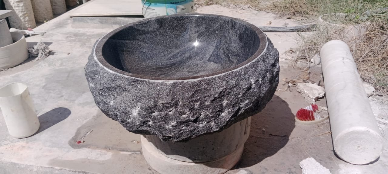 Black granite boulder wash basin